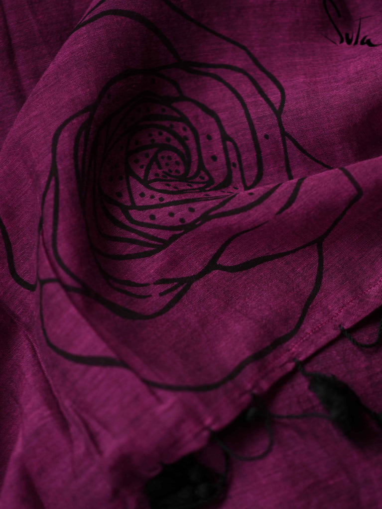 This maroon made-in-heaven mul saree with screenprinted design is simply dreamy!