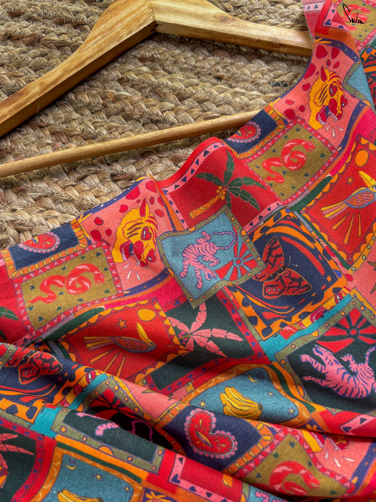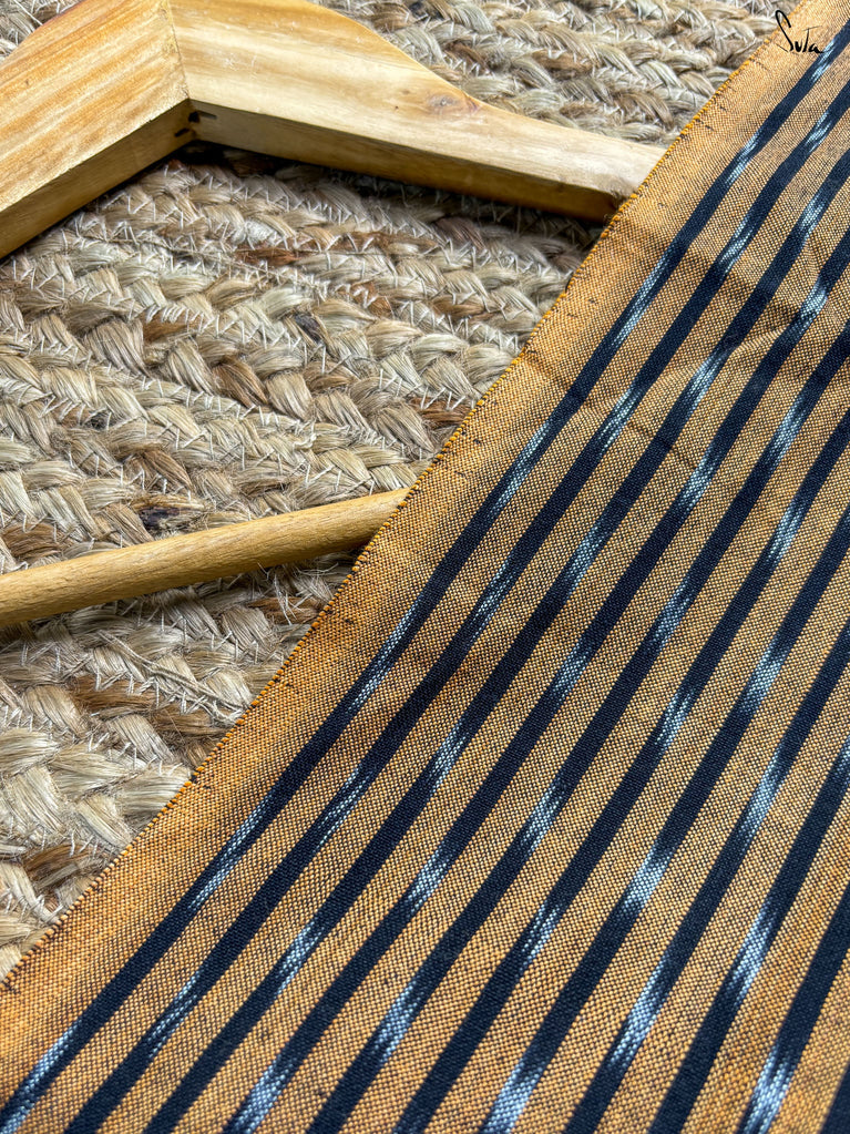 Vibrant, fearless, and full of joy - Swarangi is a celebration in motion. Woven in striking neon green cotton-silk, it’s brought to life with a soft dull gold floral jaal that adds just the right touch of elegance. Light, playful, and unapologetically bright - this saree is made to turn ordinary days into festive memories.