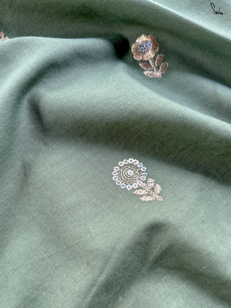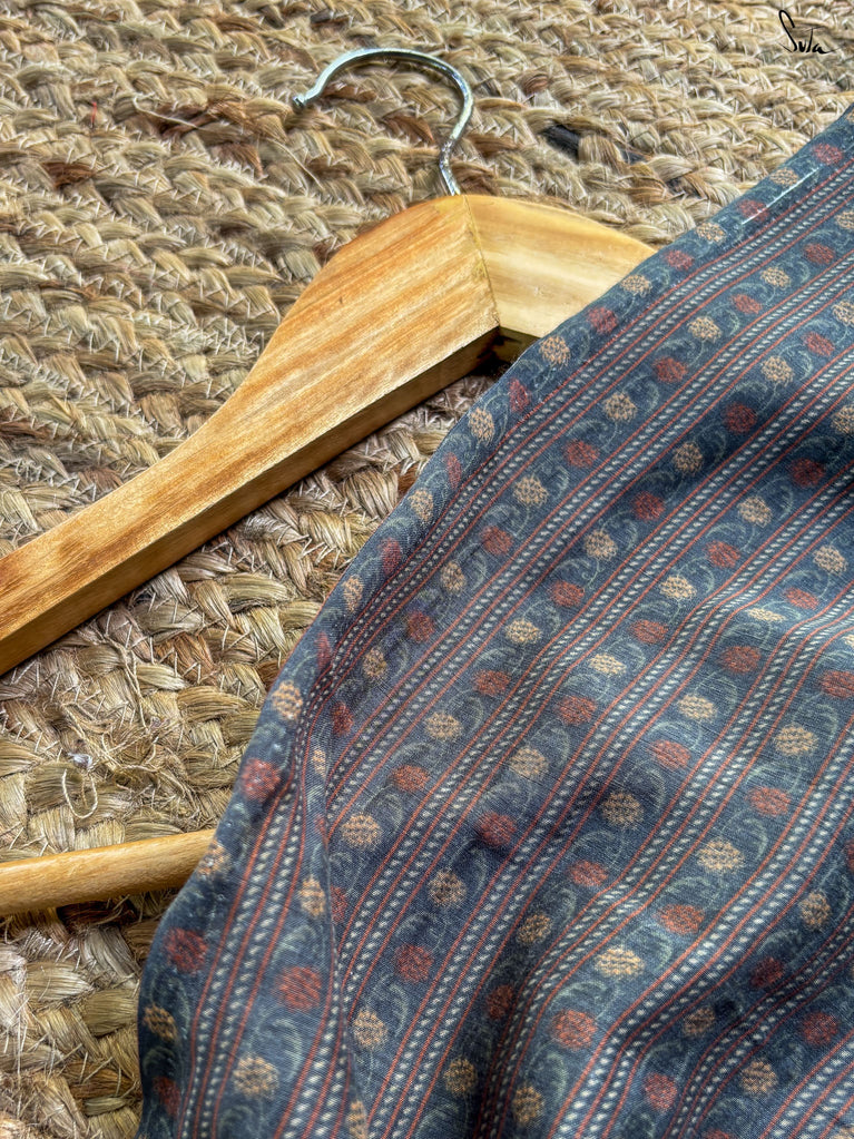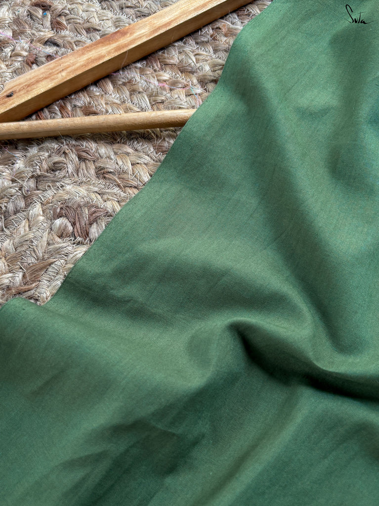 Bold yet beautifully balanced, Tivra mirrors the deep rhythm of nature. Its dark green cotton-silk base is brought to life with a delicate dull gold floral jaal - a dance of light and depth. Featherlight to drape yet rich in detail, this saree brings quiet sophistication to every festive moment.