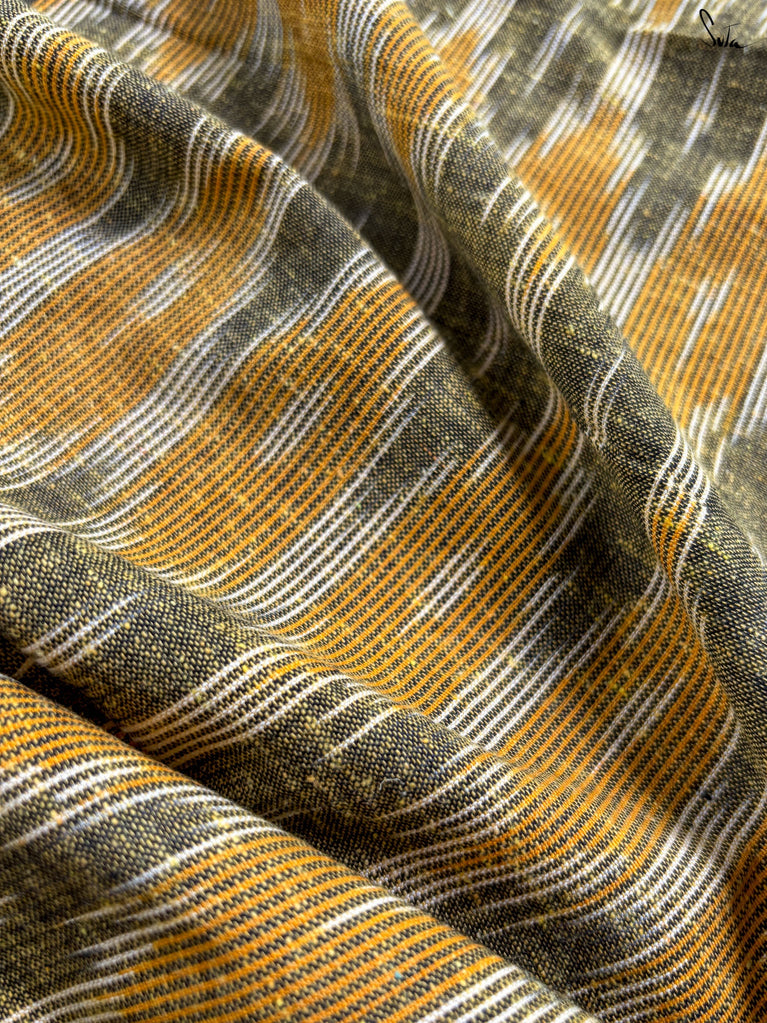 A gold saree that feels regal and luminous. The shade glows with liquid confidence and timeless charm. The geometric dobby border adds texture and balance, giving the saree a refined finish. Perfect for festive evenings that call for effortless elegance. Comes with a matching blouse piece, no fall.