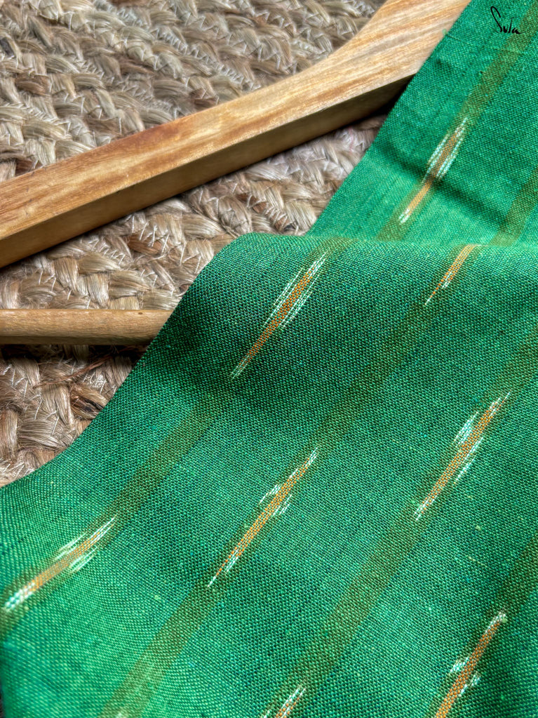 An olive green saree that feels grounded and graceful. The colour carries a sense of calm confidence and earthy charm. The geometric dobby border adds definition and style, keeping the look elegant and festive. Perfect for celebrations that call for subtle sophistication. Comes with a matching blouse piece, no fall.