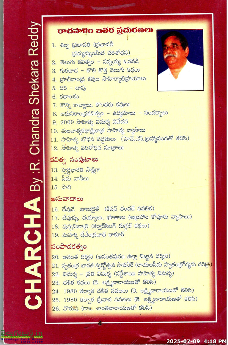 Charcha-Telugu Sahitya Vimarsha Parisodhanala Meeda Vyasalu