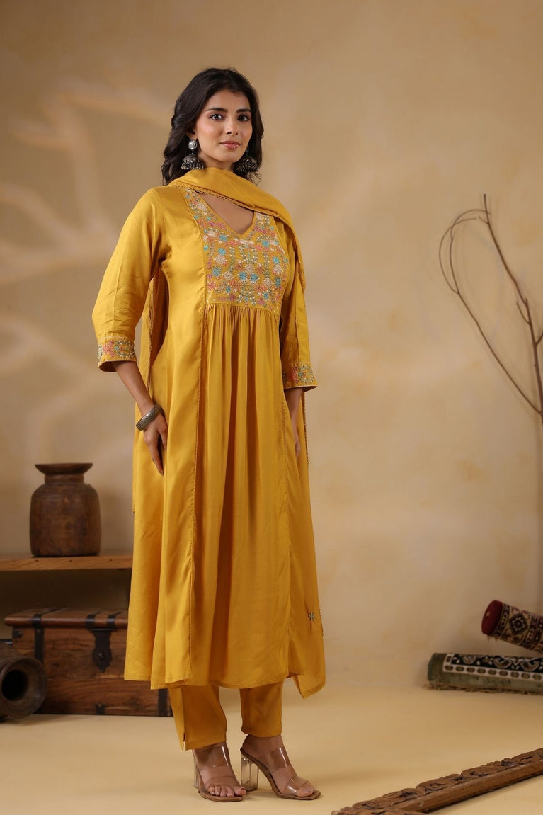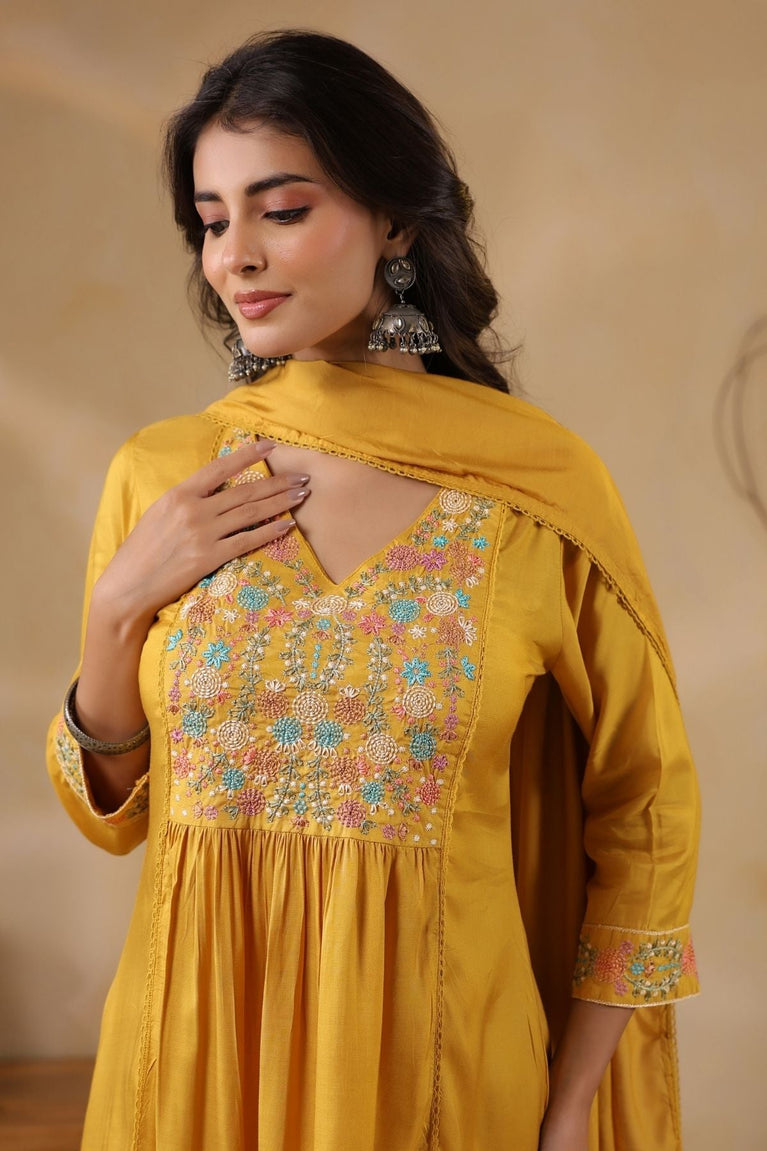 Elevate your festive style with this Designer Kurti with Light Embroidery in a rich mustard hue. Featuring delicate threadwork and a traditional kurta set design, it’s perfect for celebrations, family gatherings, or cultural events.