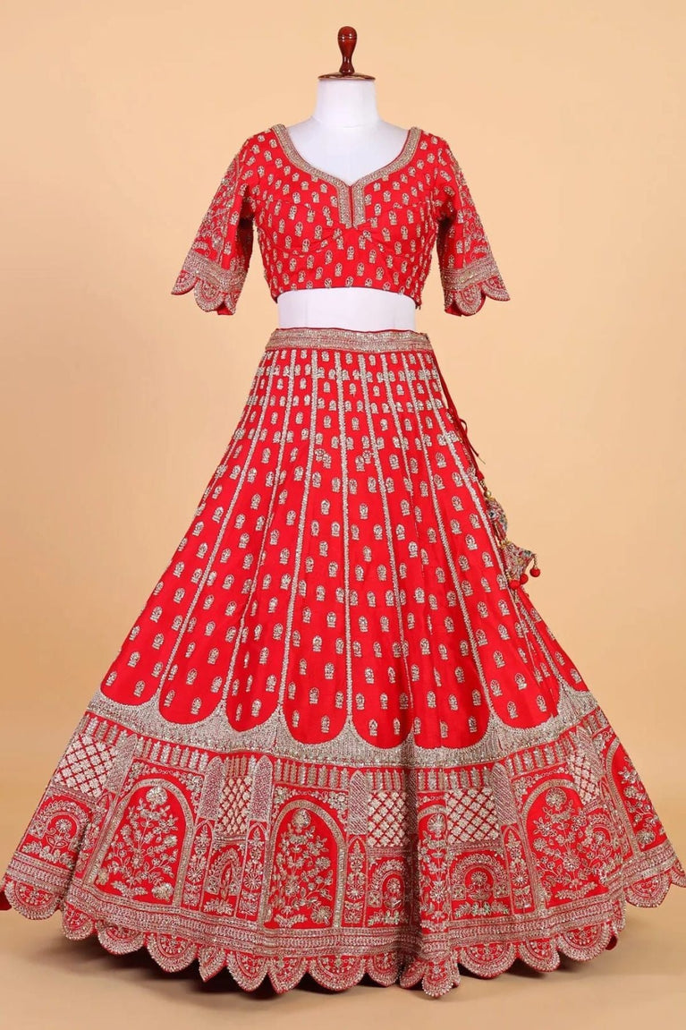 Step into a world of timeless charm with our Floral Traditional Silk Lehenga. Crafted from premium silk, this lehenga showcases a vibrant burst of colors adorned with intricate floral patterns, reflecting the richness of traditional artistry.