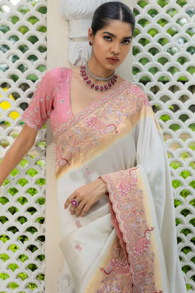 Baby Pink Saree with Heavy Jall Pallu & Embroidery – Shyamal Bhomika Replica