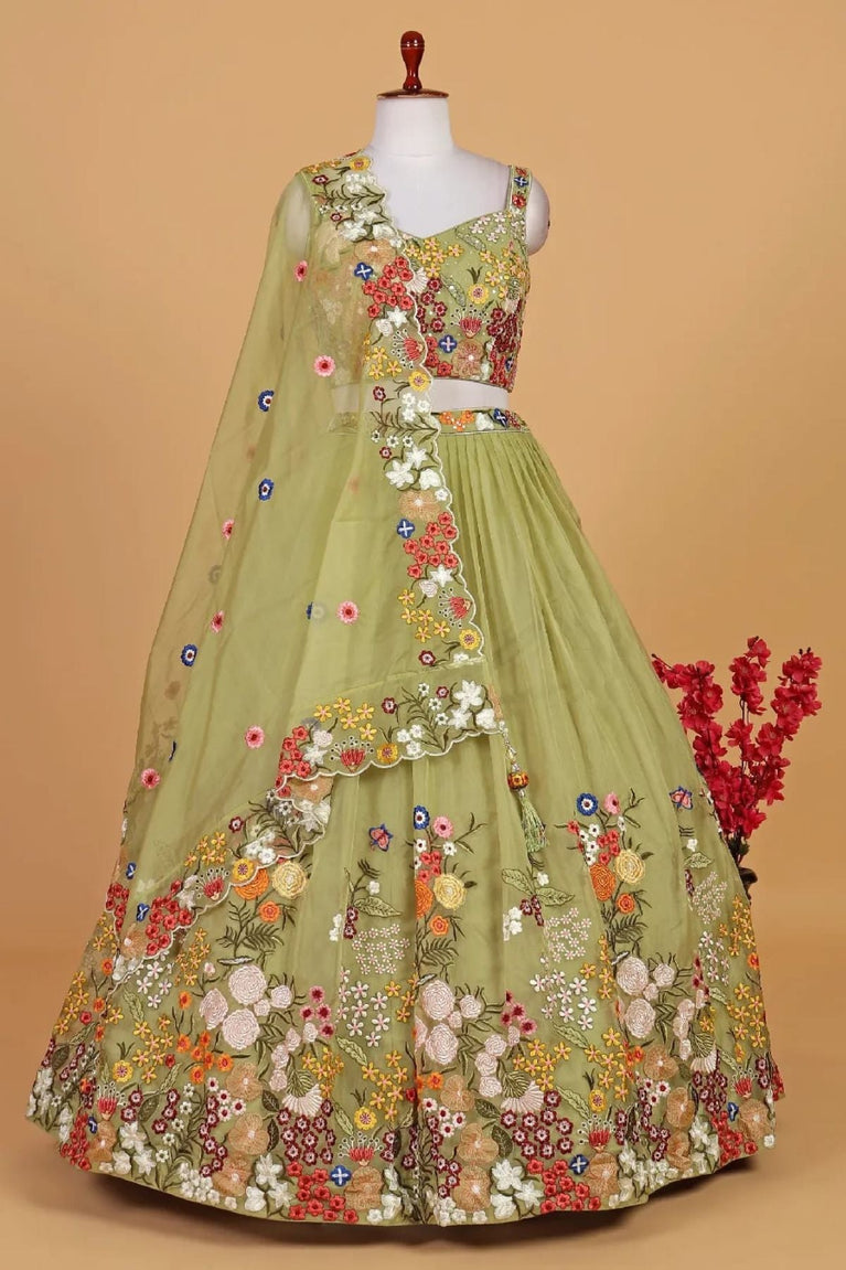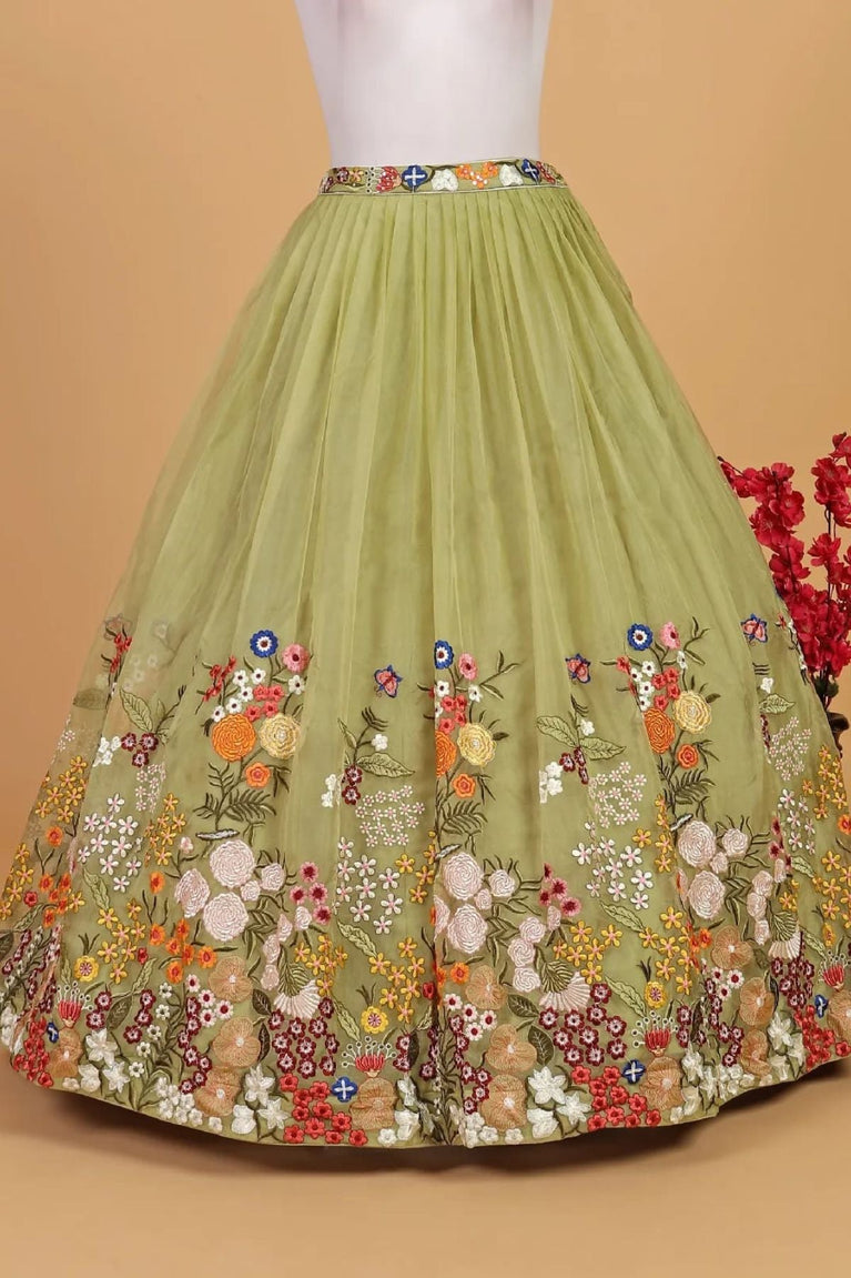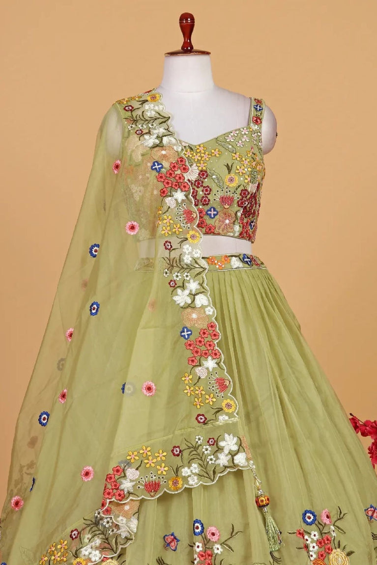 Capture the essence of subtle royalty with Pista Green Lehenga. This light green lehenga, intricate embroidery with fine detailing, offers a fresh and enchanting look for weddings, receptions, or festive soirées.