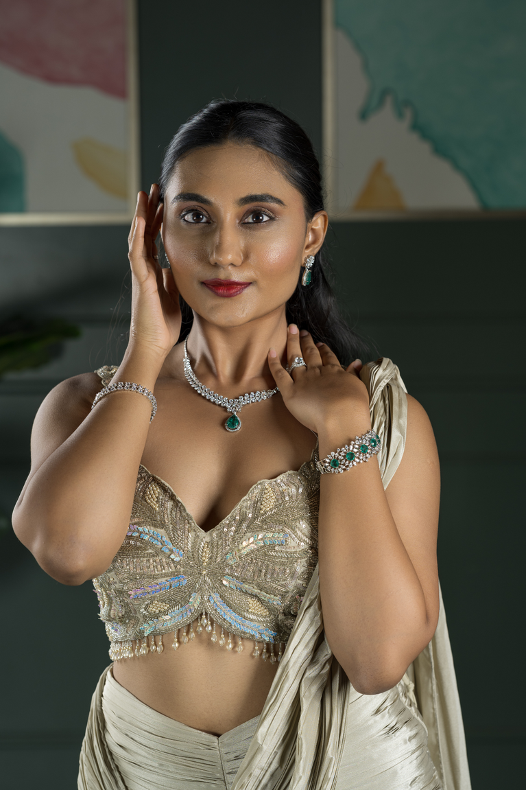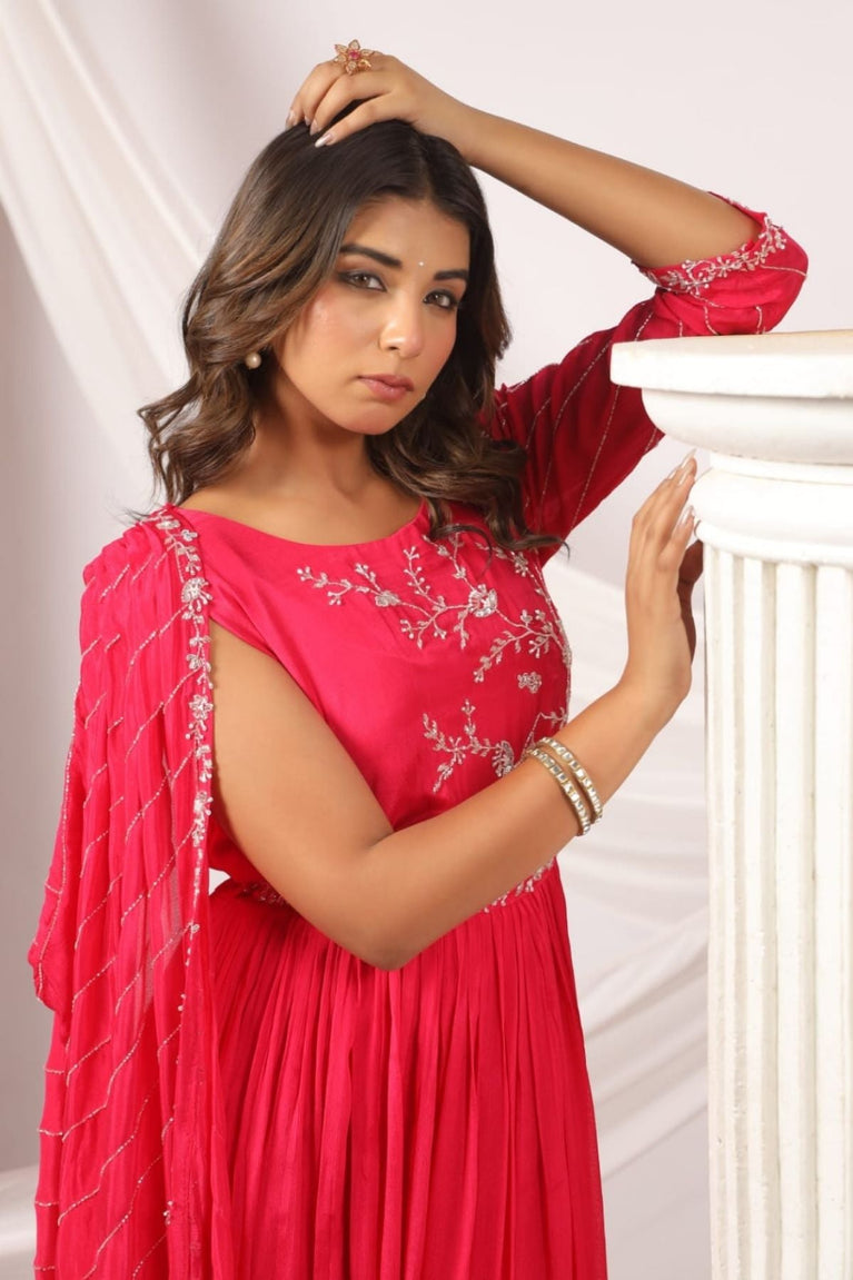 Featuring intricate zari detailing, this party wear gowns is a perfect fit for weddings, receptions, or festive evenings.