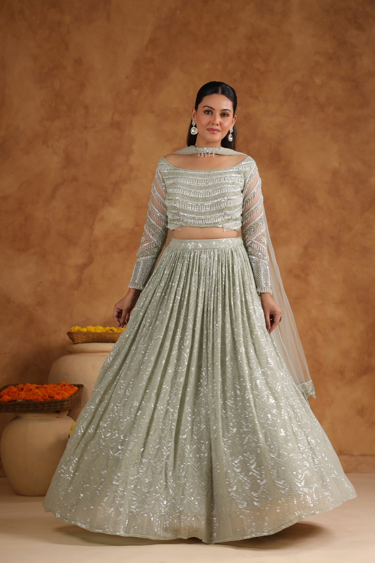 Net lehenga with Full Steal Grey Sequence Work on lehenga & Blouse
