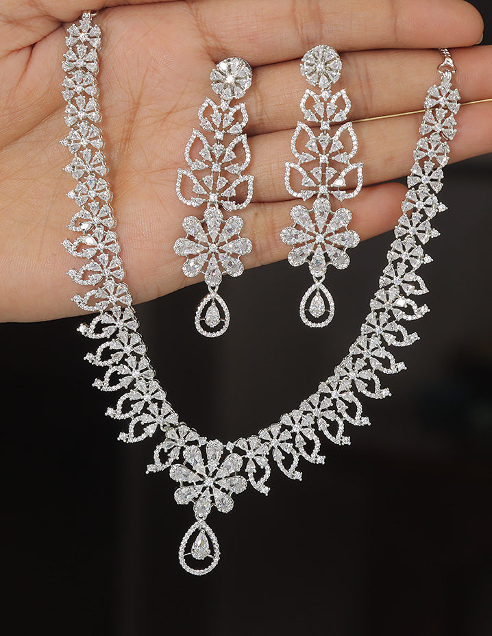 Designer Rhodium Polish Zirconia Necklace Set