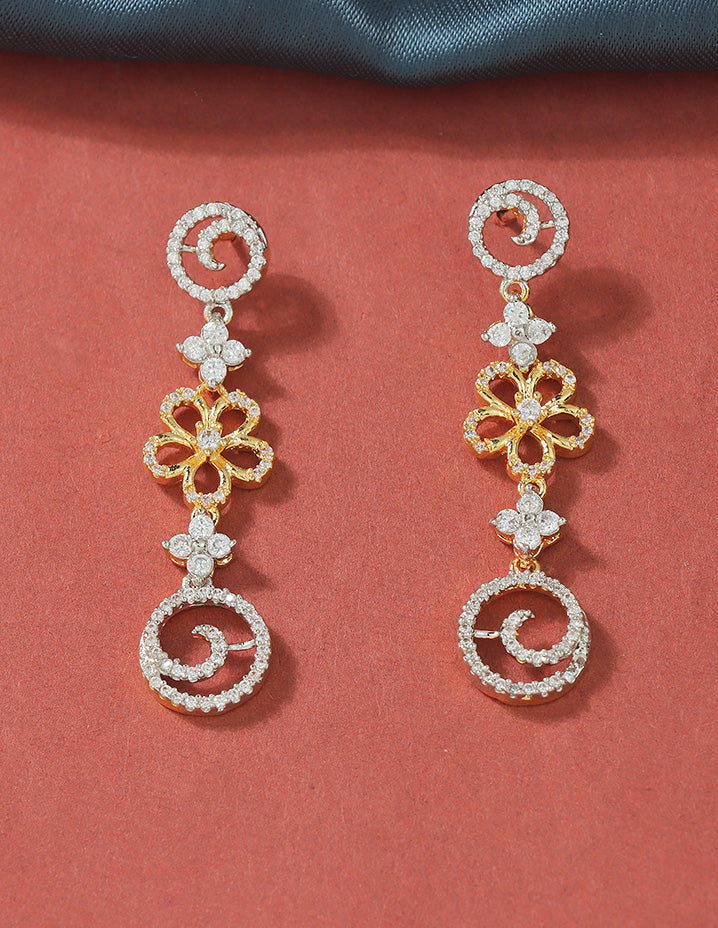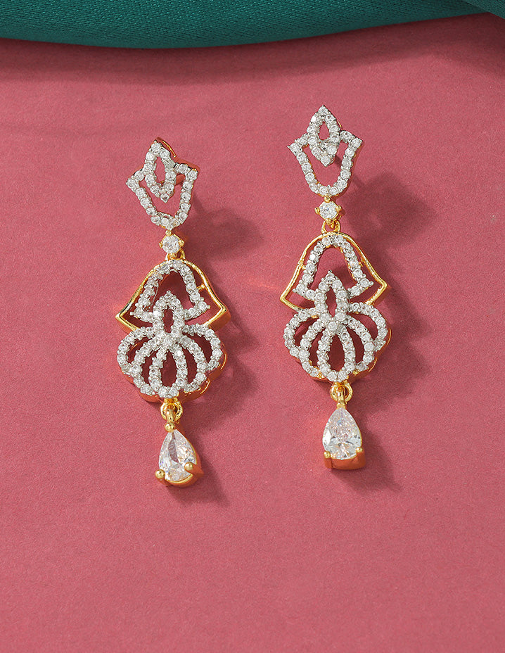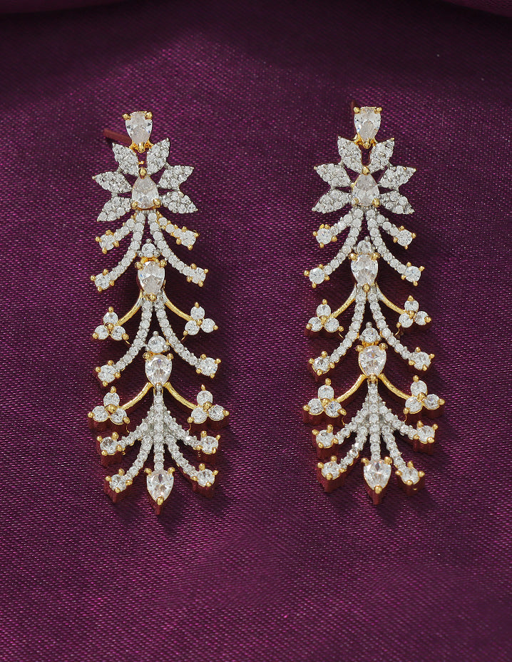 A radiant silver-toned necklace and earring set adorned with sparkling Bud and floral motifs, perfectly blending elegance and charm for your special occasions.