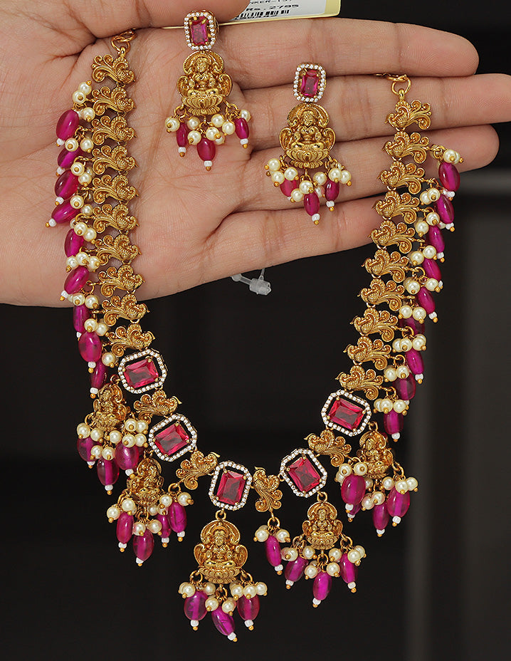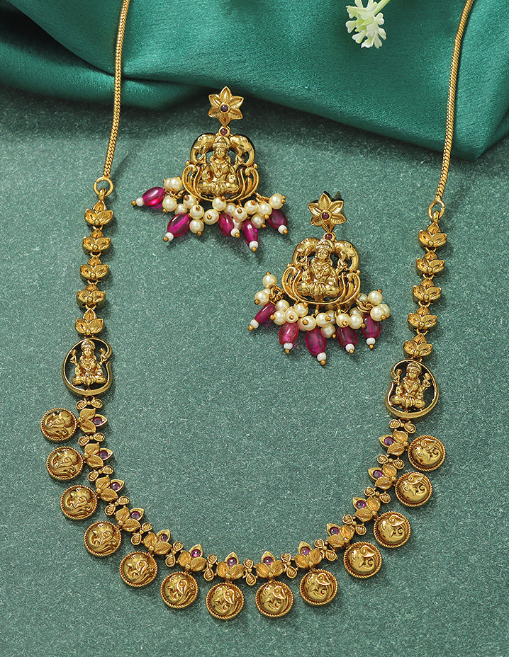 Designer Lakshmi Devi Kempu Necklace Set