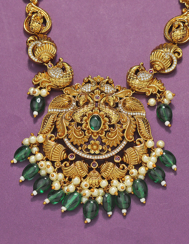 Designer Radiant Emerald Matt Kempu Necklace Set