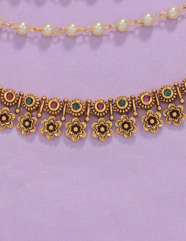 Experience the vibrant Kempu Stones in this beautiful Chempaswara. Perfect for traditional Indian sarees, it adds elegance to any occasion - from home pujas to grand weddings.