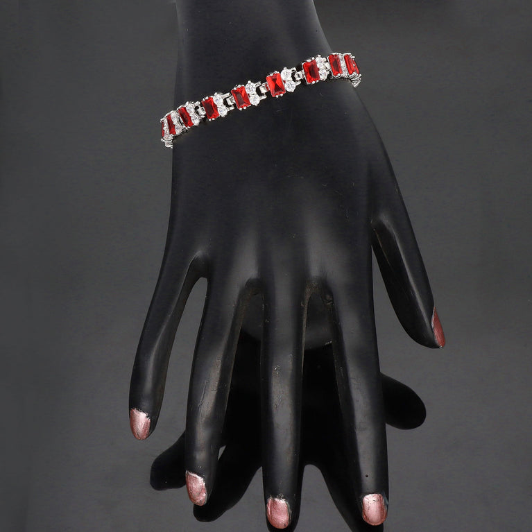 Elegant Rhodium-plated chain bracelet adorned with sparkling Ruby stones. Perfect for festive vibes or party nights—style that stands out effortlessly!