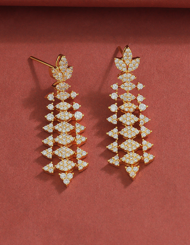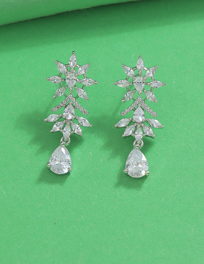 Complete your night event saree look with our dazzling rhodium and gold polish Studs. The sparkling American diamonds and White Stones will leave your peers stunned.