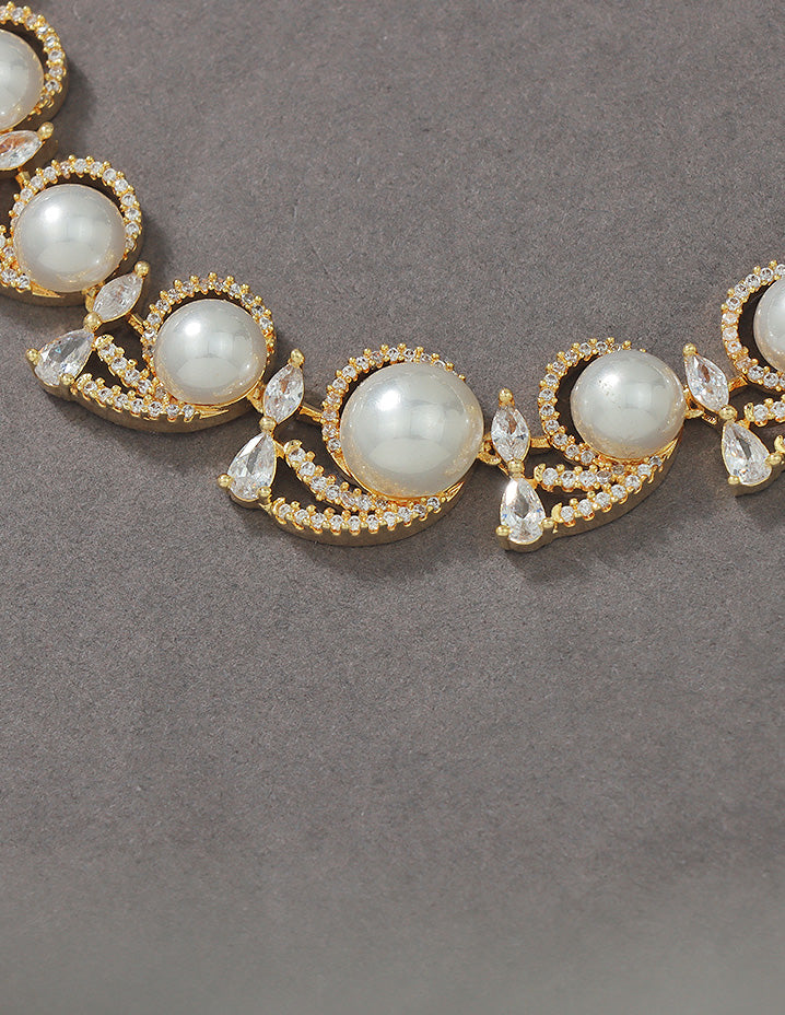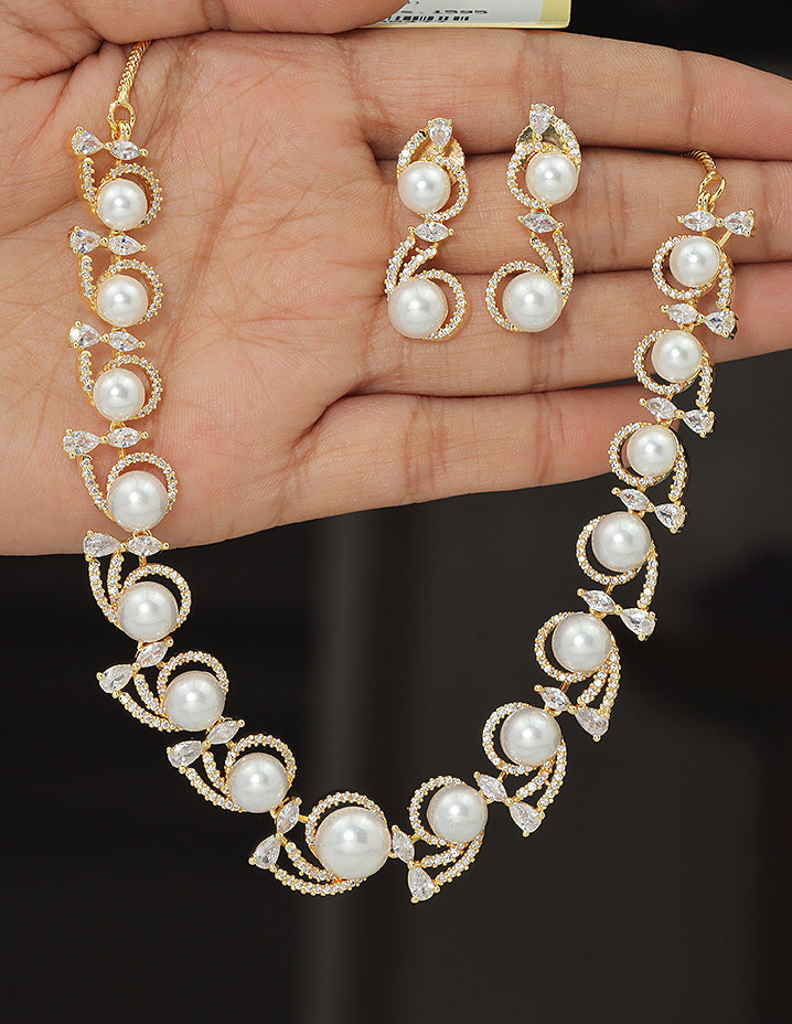 Designer Zirconia Pearl Whirl Elegance Necklace Set