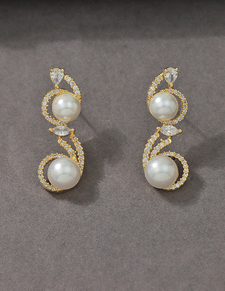 A sophisticated necklace set featuring swirling GJ-toned patterns, shimmering white pearls, and sparkling CZ stones. Perfectly balanced with matching earrings, this set adds a touch of timeless charm to any outfit.