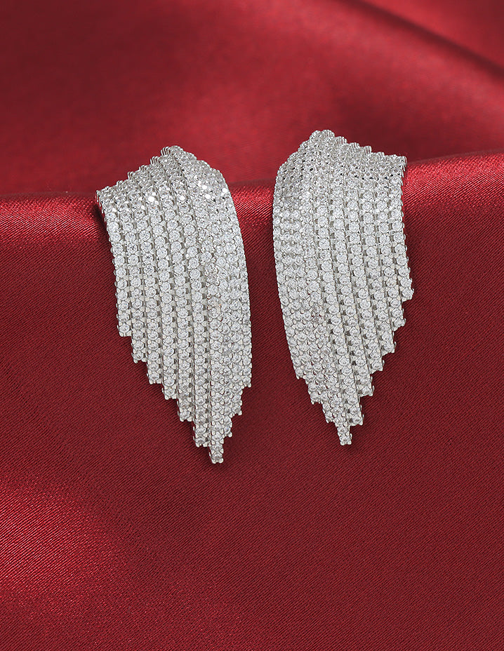 Dazzling layers of shimmering crystals flow gracefully in a cascading wing design, creating a statement of elegance and brilliance for any occasion.