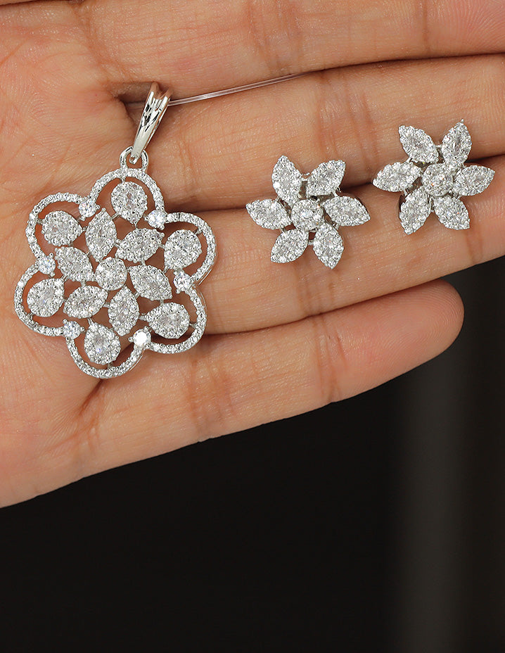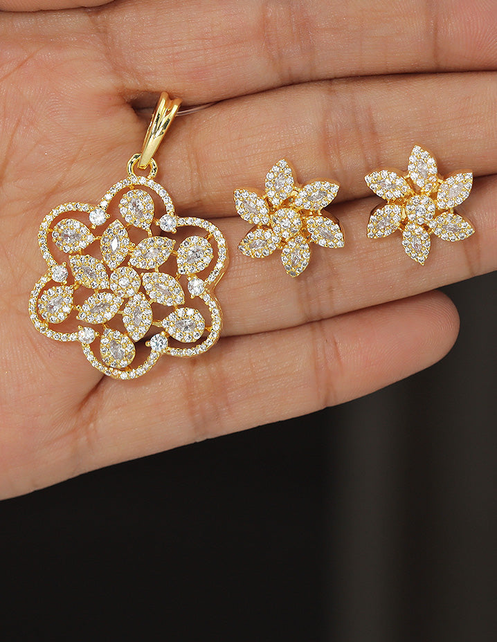 Designer Zirconia Floral Pendant Set