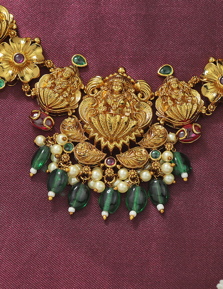 Designer Lakshmi Devi Emerald Matt Kempu Necklace Set
