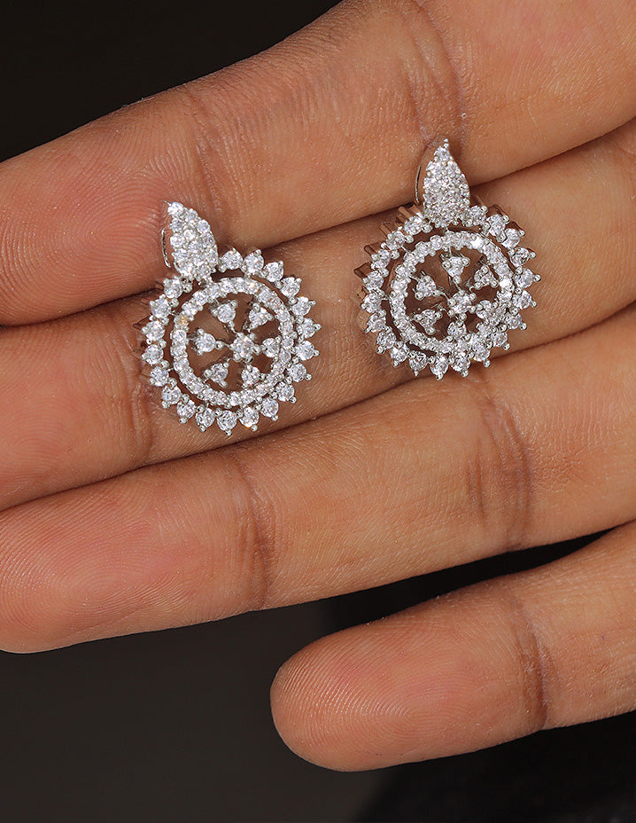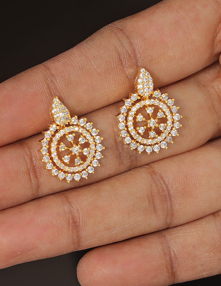 Complete your night event saree look with our dazzling rhodium and gold polish Studs. The sparkling American diamonds and White Stones will leave your peers stunned.
