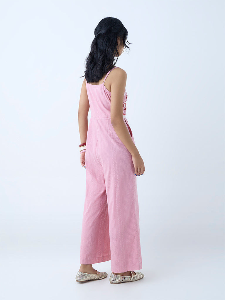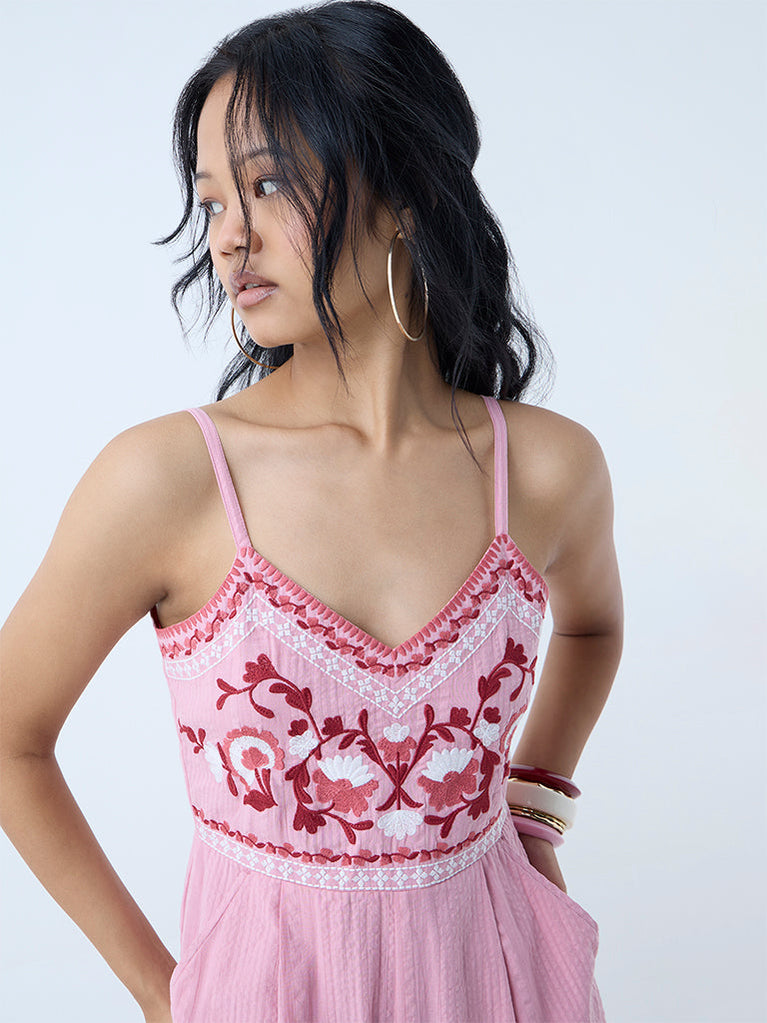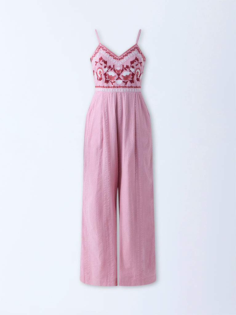Bombay Paisley Pink Floral Embroidered Cotton Jumpsuit