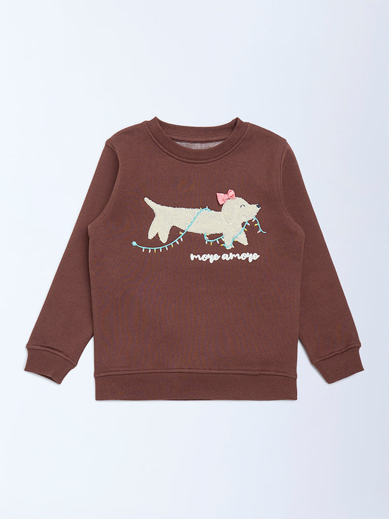 HOP Kids Brown Animal-Detail Cotton-Blend Sweatshirt