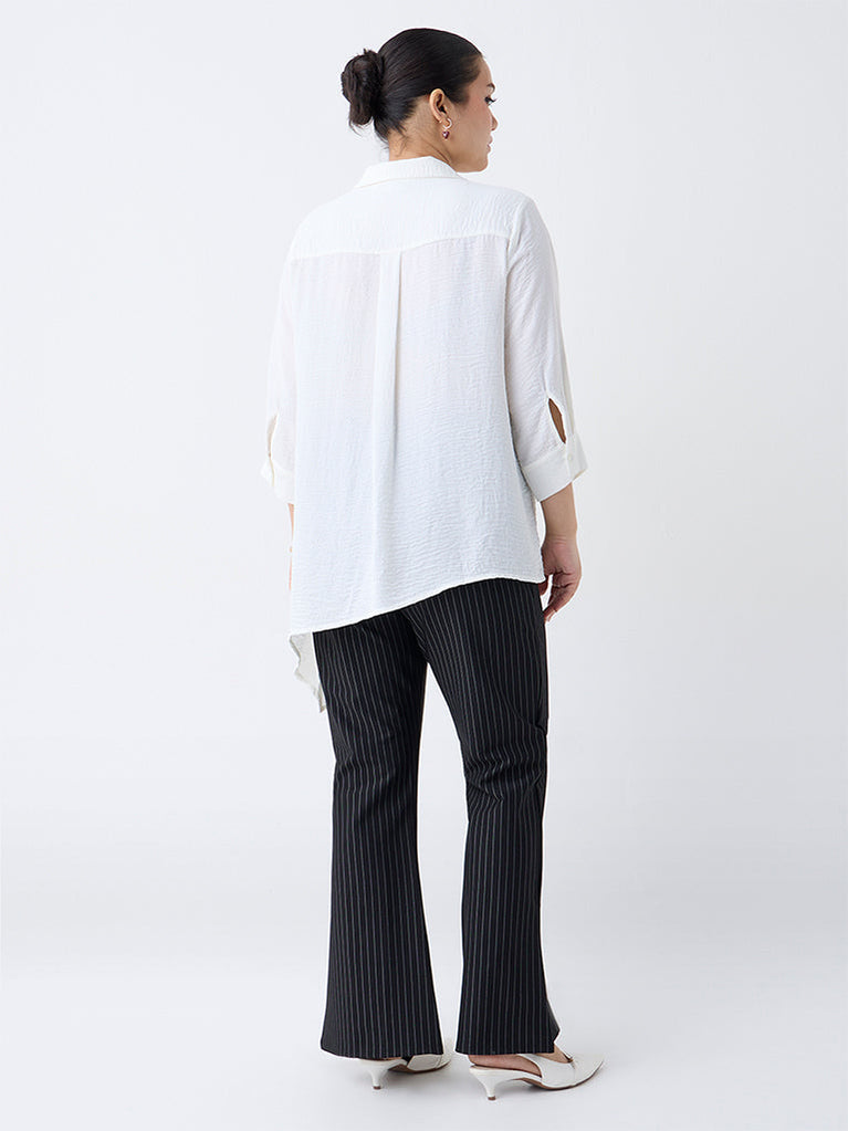 These off-white pants from Bombay Paisley redefine everyday dressing. Crafted for comfort with side pockets and an elasticated waistband featuring a button-zip fly, they’re finished with a braided leather belt that adds a touch of earthy sophistication.