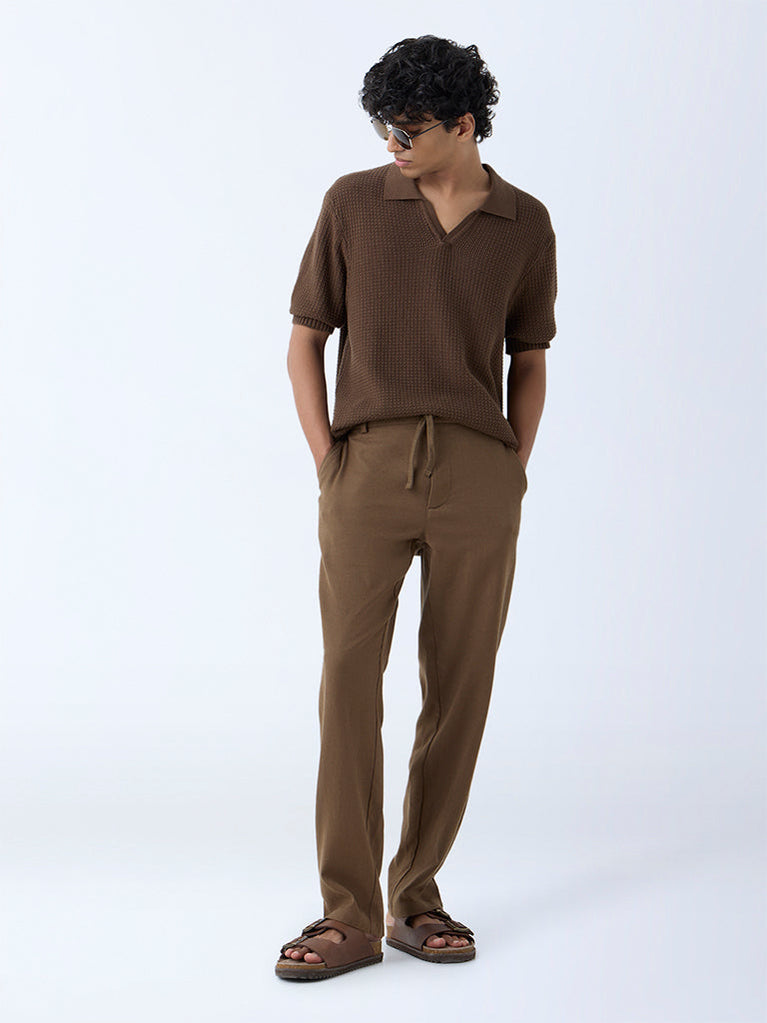 Ascot Brown Checkered Relaxed-Fit Cotton-Blend T-Shirt