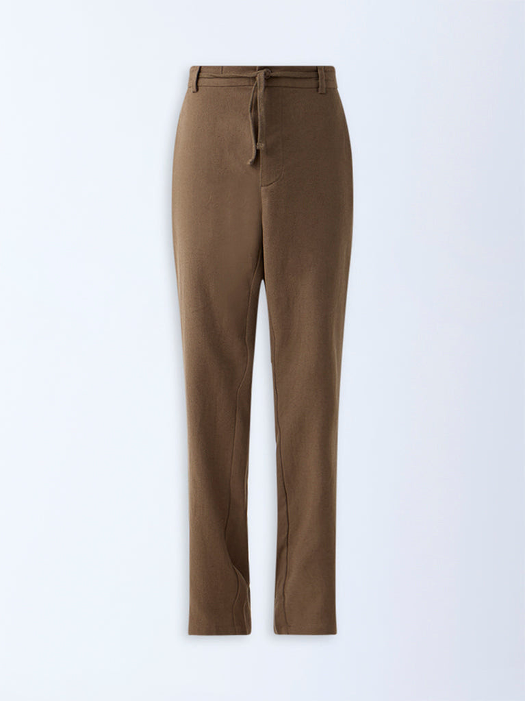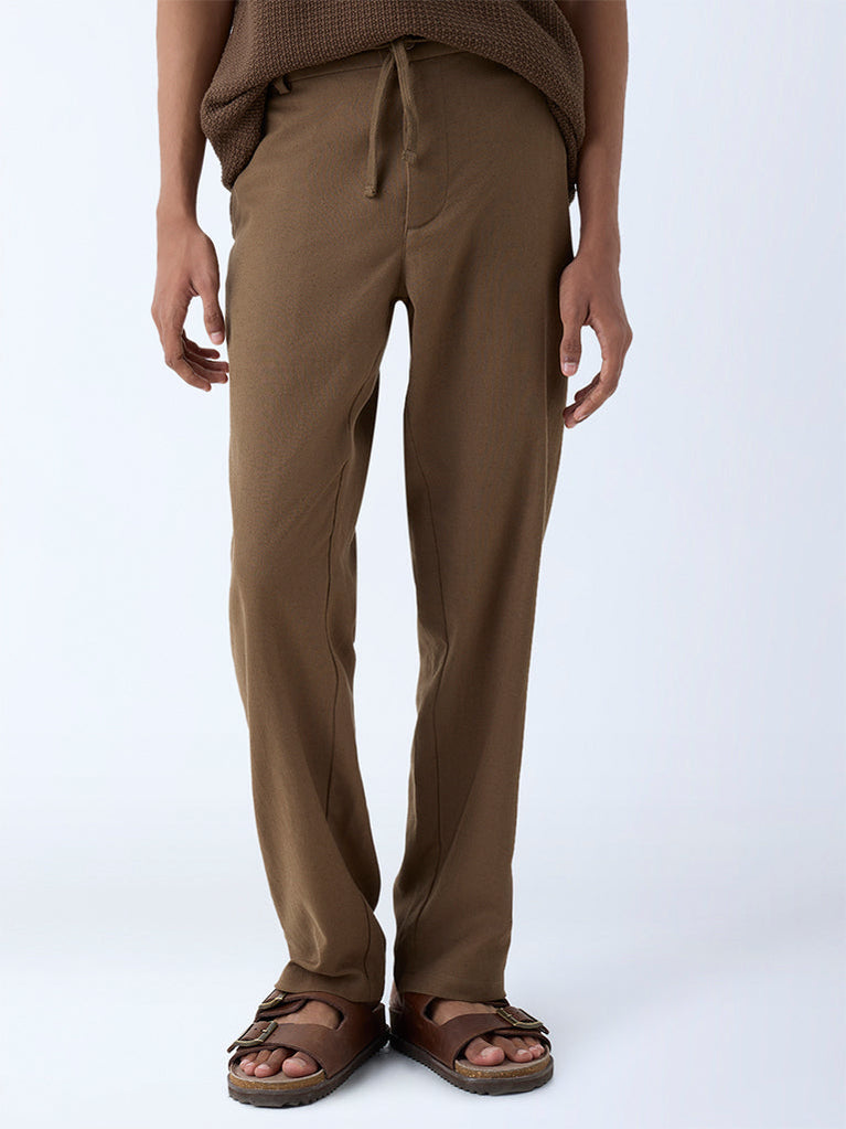 Bring sophisticated charm to your daytime assortment with these beige chinos from ETA. Cut in a relaxed fit, they feature a buttoned waistband with adjustable drawstrings, a zipper fly, and belt loops for a comfortable finish. Multiple pockets enhance functionality, while the soft cotton-blend fabric ensures all-day ease.