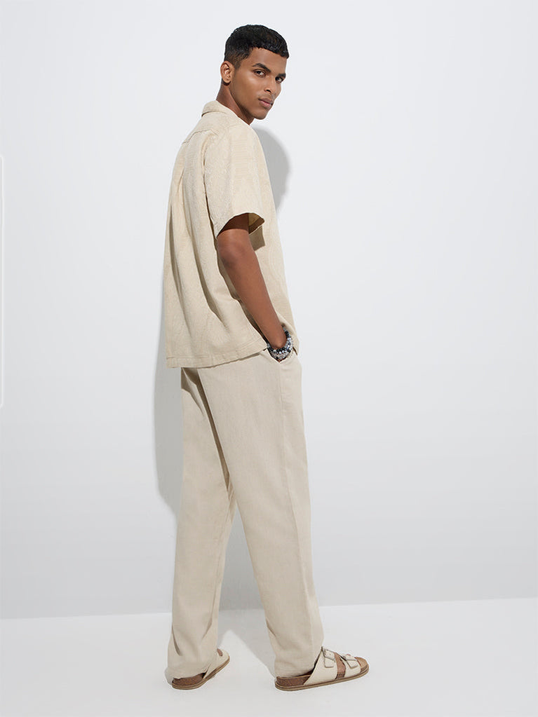 ETA Beige Geometric Pattern Relaxed-Fit Cotton Shirt
