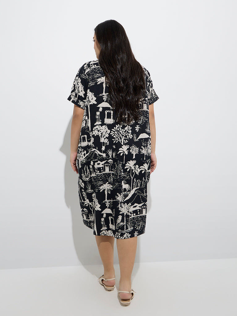 Gia Black Scenic-Inspired Cotton Straight Dress