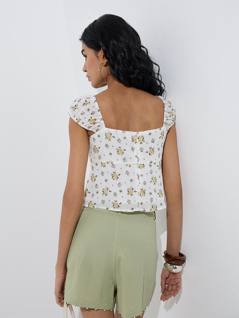 Ascot Off-White Floral Pattern Relaxed-Fit Shirt