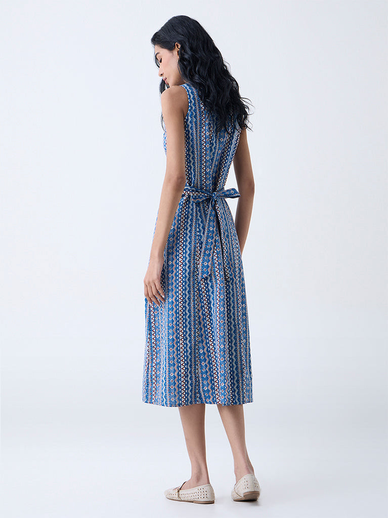 Bombay Paisley Blue Striped Cotton-Blend A-Line Dress
