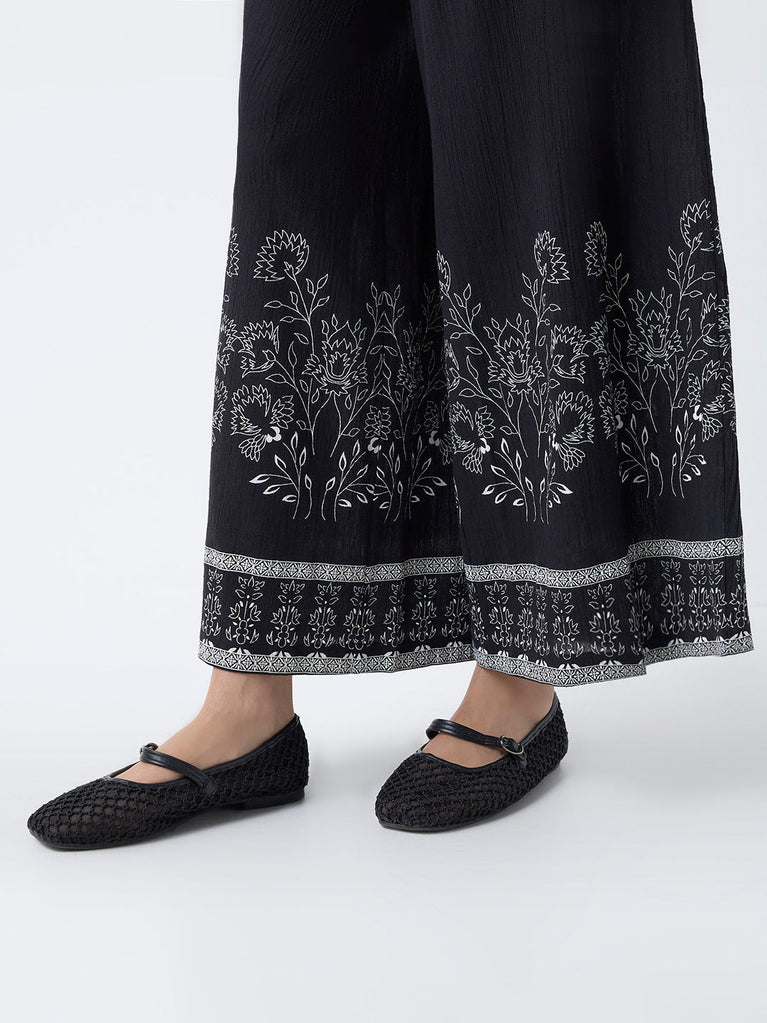 Bombay Paisley Black Floral Design Cotton Palazzos