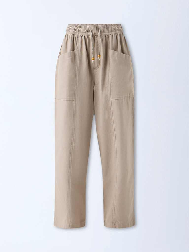 For moments when comfort tops the list but style still matters, these beige pants from Bombay Paisley deliver the perfect balance. The elasticated waistband with a drawstring gives a personalised fit, while the straight-cut profile keeps the look clean and effortless. Pure cotton construction ensures breathability during warm weather.