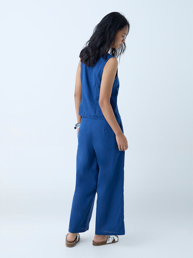These indigo pants from Bombay Paisley are cut from a lightweight, crinkle-textured fabric that lends a relaxed yet refined feel. Designed for comfort, they feature an elasticated waistband with adjustable drawstrings and practical side pockets.