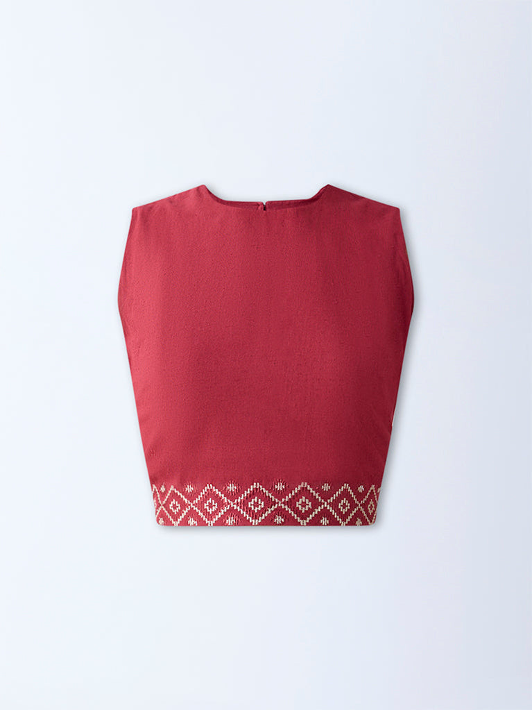 Bombay Paisley Maroon Embroidered Cotton-Blend Crop Top