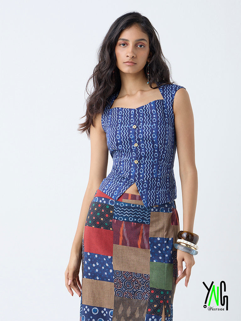 This indigo top from Bombay Paisley showcases distinctive ethnic-inspired prints that add sophisticated charm. Woven from premium fabric, it features a flattering sweetheart neck and sleeveless cut for comfort. A button placket at the back, thoughtfully spaced, adds an alluring finish.