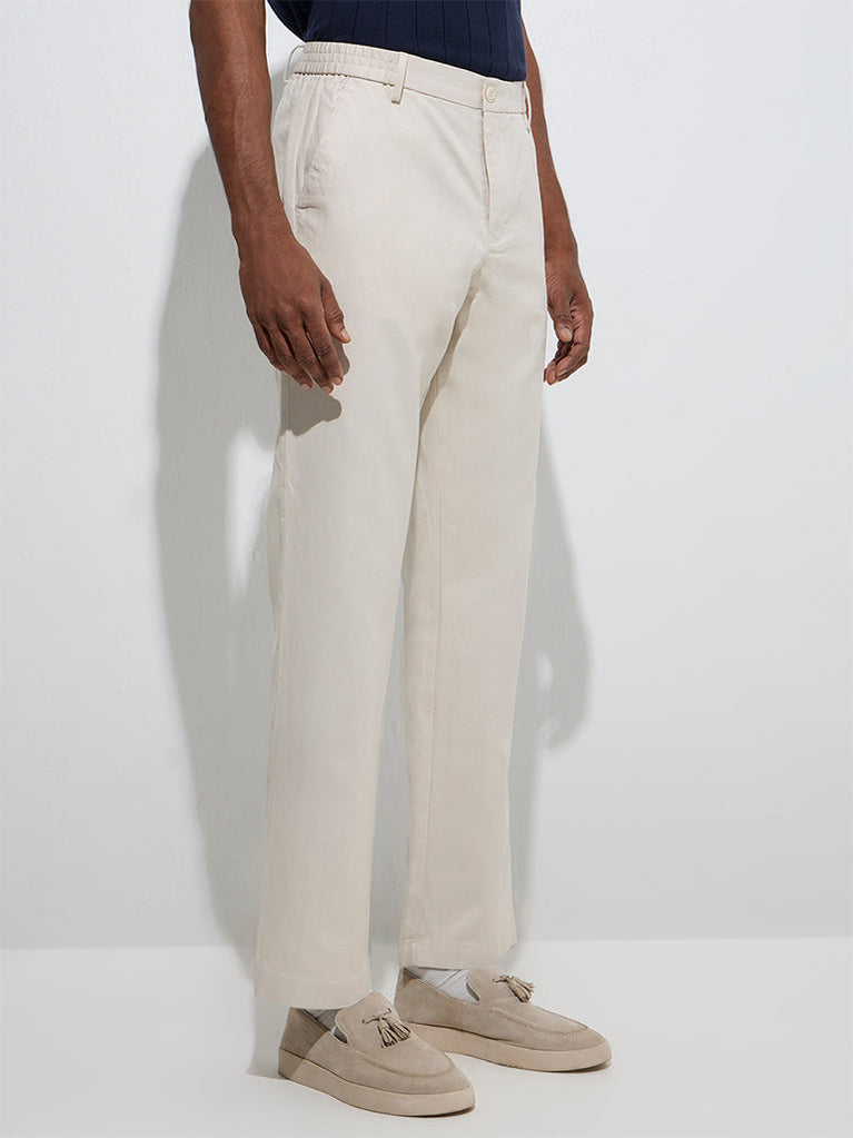 Ascot Beige Relaxed-Fit Mid-Rise Cotton-Blend Chinos