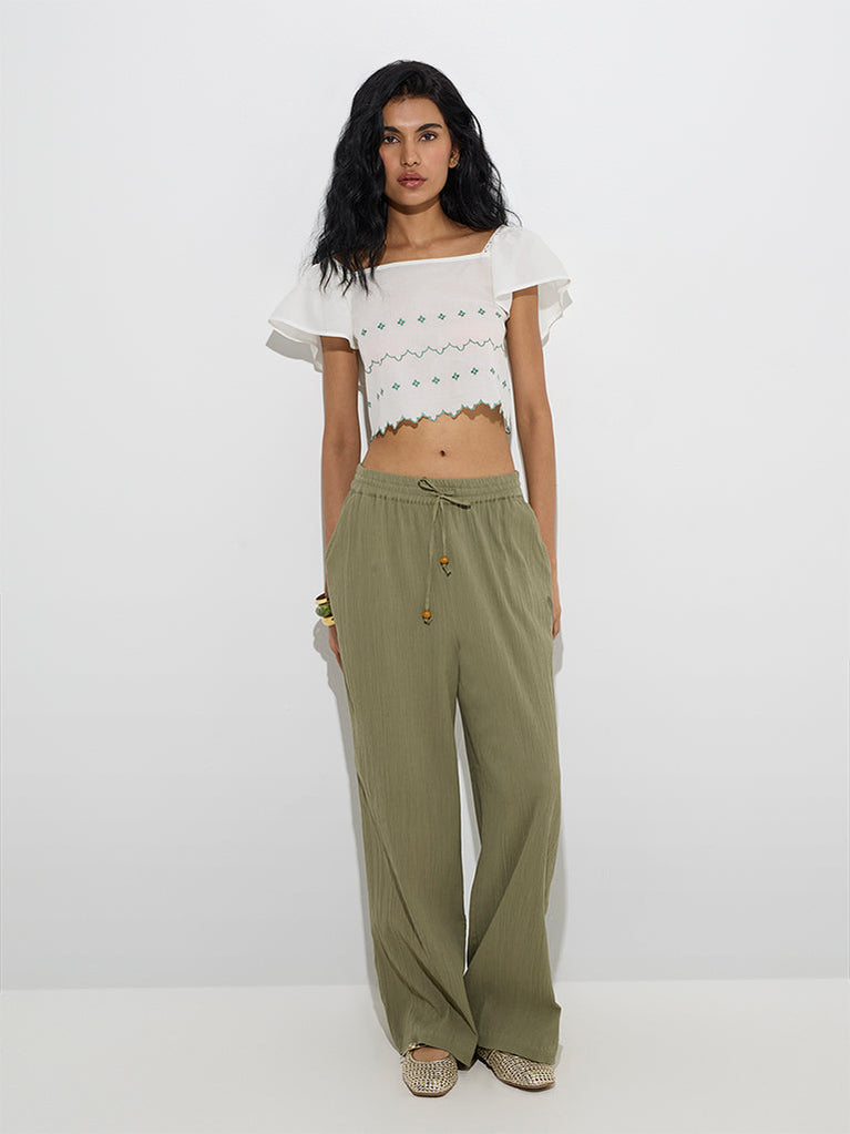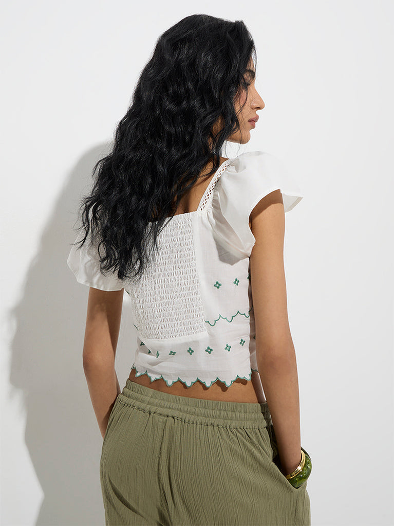 Bombay Paisley White Floral Embroidered Cotton Top