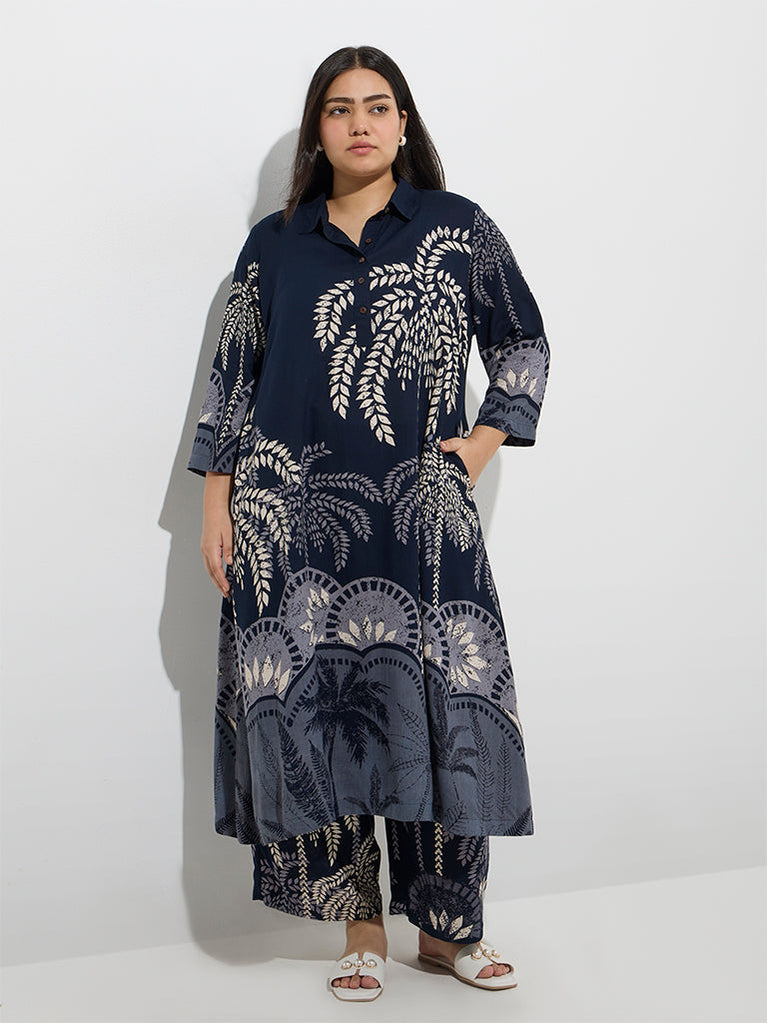 Diza Navy Tropical Pattern A-Line Kurta