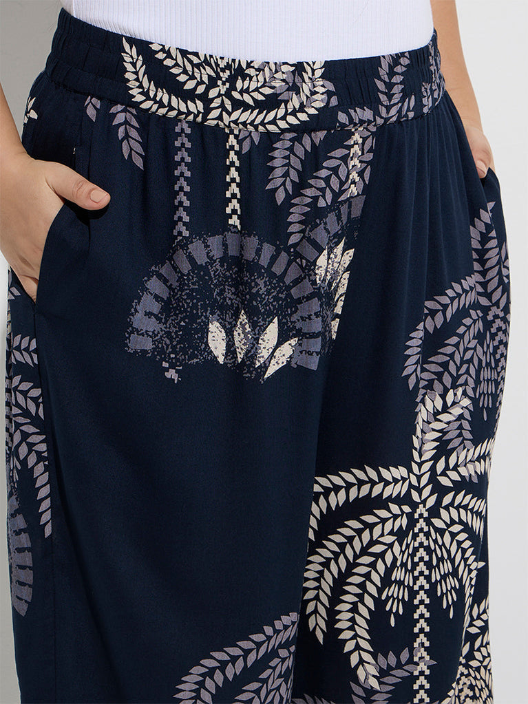 Diza Navy Tropical-Inspired Ethnic Pants
