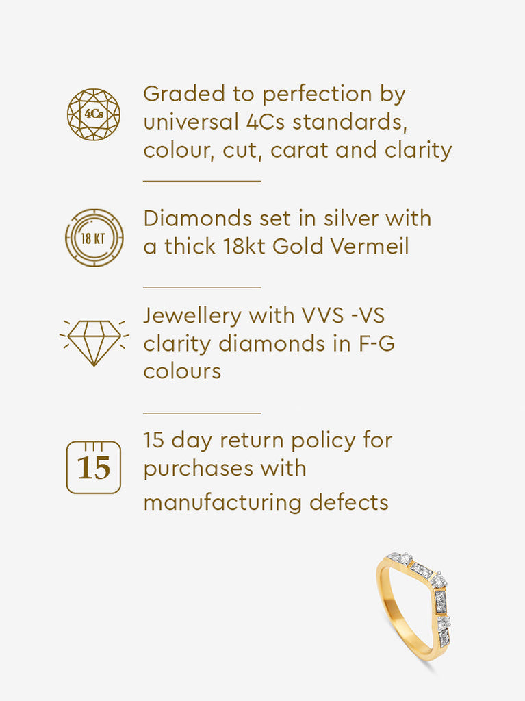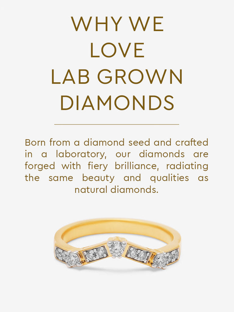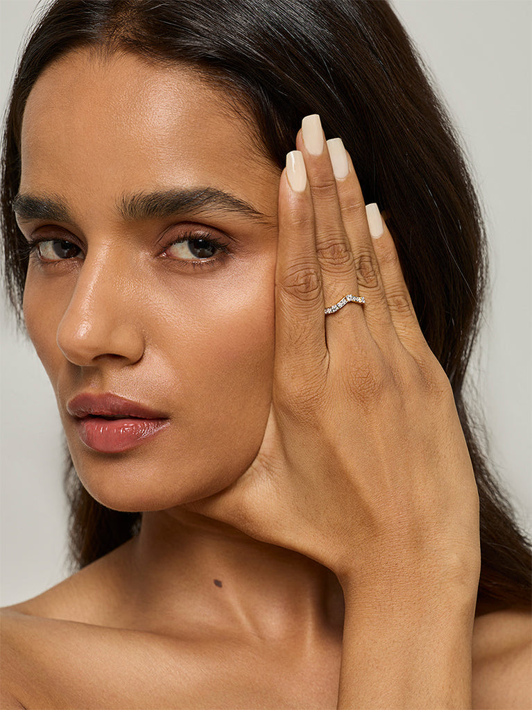 A symbol of strength, direction, and style—this chevron ring from Westside X Pome is a modern classic. Sculpted in gold and detailed with shimmering lab-grown diamonds, it’s designed with clean, angular lines that speak to quiet confidence. Whether worn solo or stacked, it lends a sharp yet elegant accent to your ensemble. Ideal for those who love their jewellery to mean more and still go with everything.