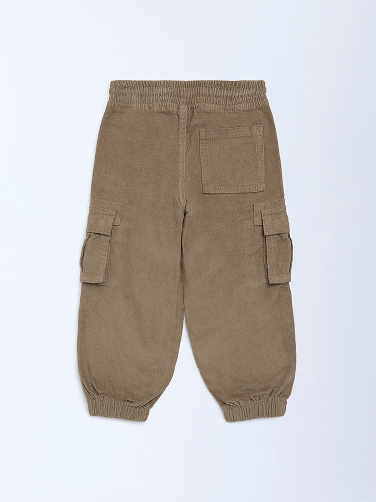HOP Kids Brown Mid-Rise Corduroy Joggers
