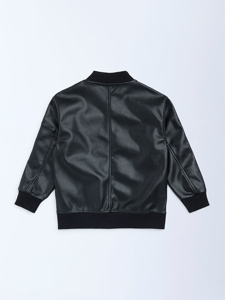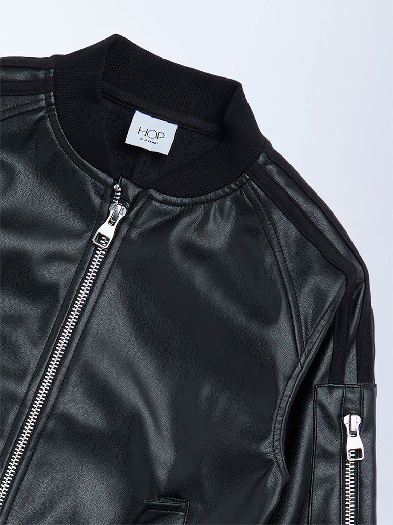 HOP Kids Black Faux-Leather Biker Jacket