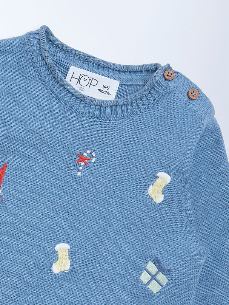 HOP Baby Blue Christmas-Themed Cotton Sweater