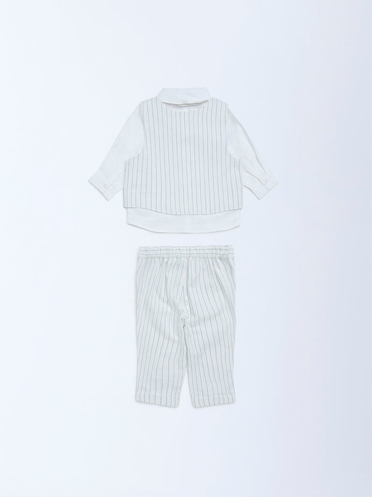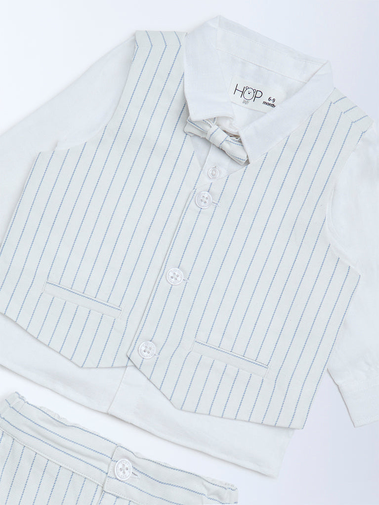 HOP Baby Blue Striped Cotton Shirt, Waistcoat, Trousers & Bow Set