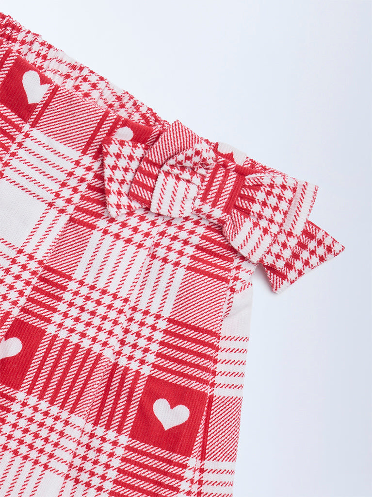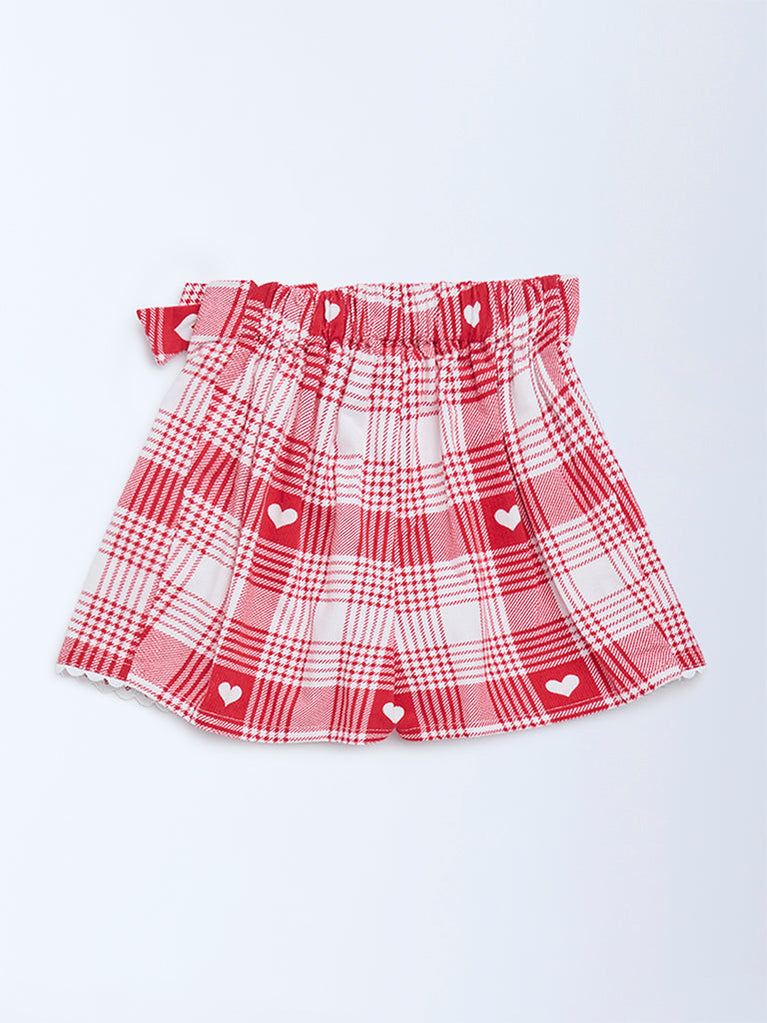 HOP Baby Red Checkered High-Rise Cotton Skort