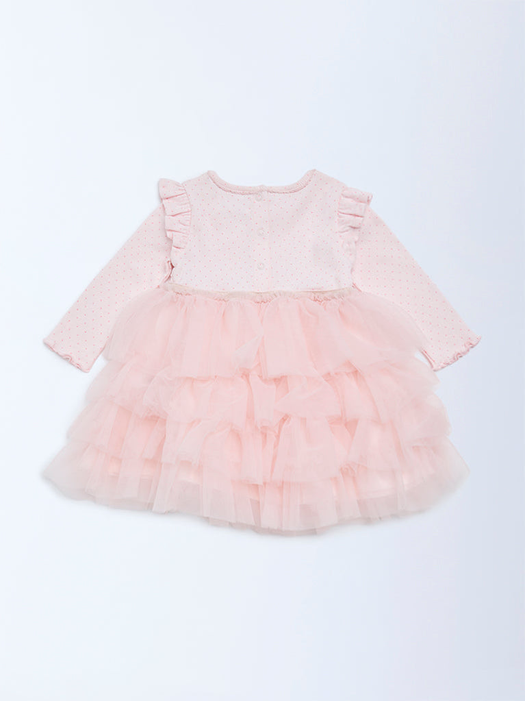 HOP Baby Pink Printed Cotton-Blend Tiered Dress